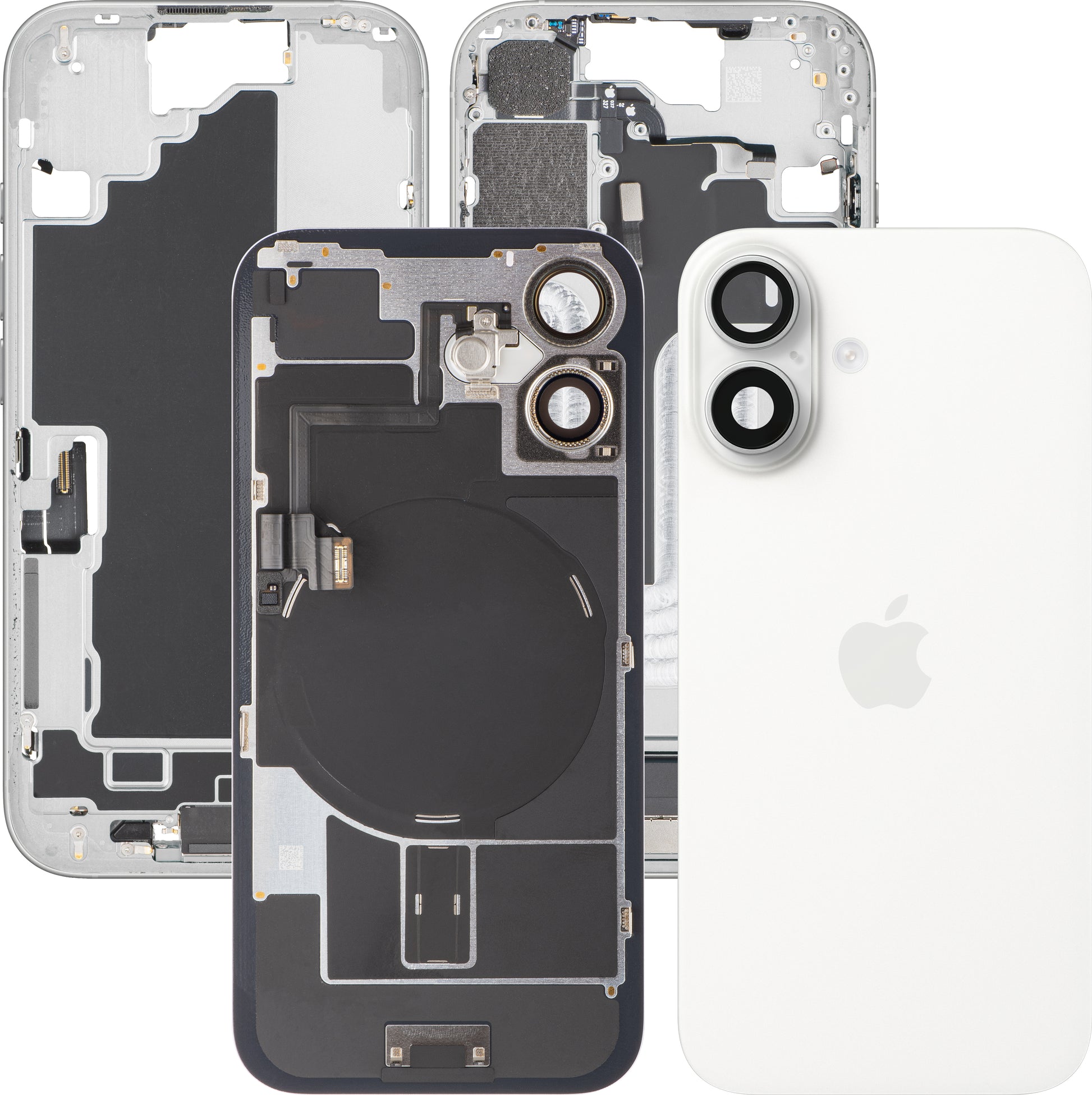 Apple iPhone 16 Battery Cover, With Middle Casing, Full Parts, White, Swap