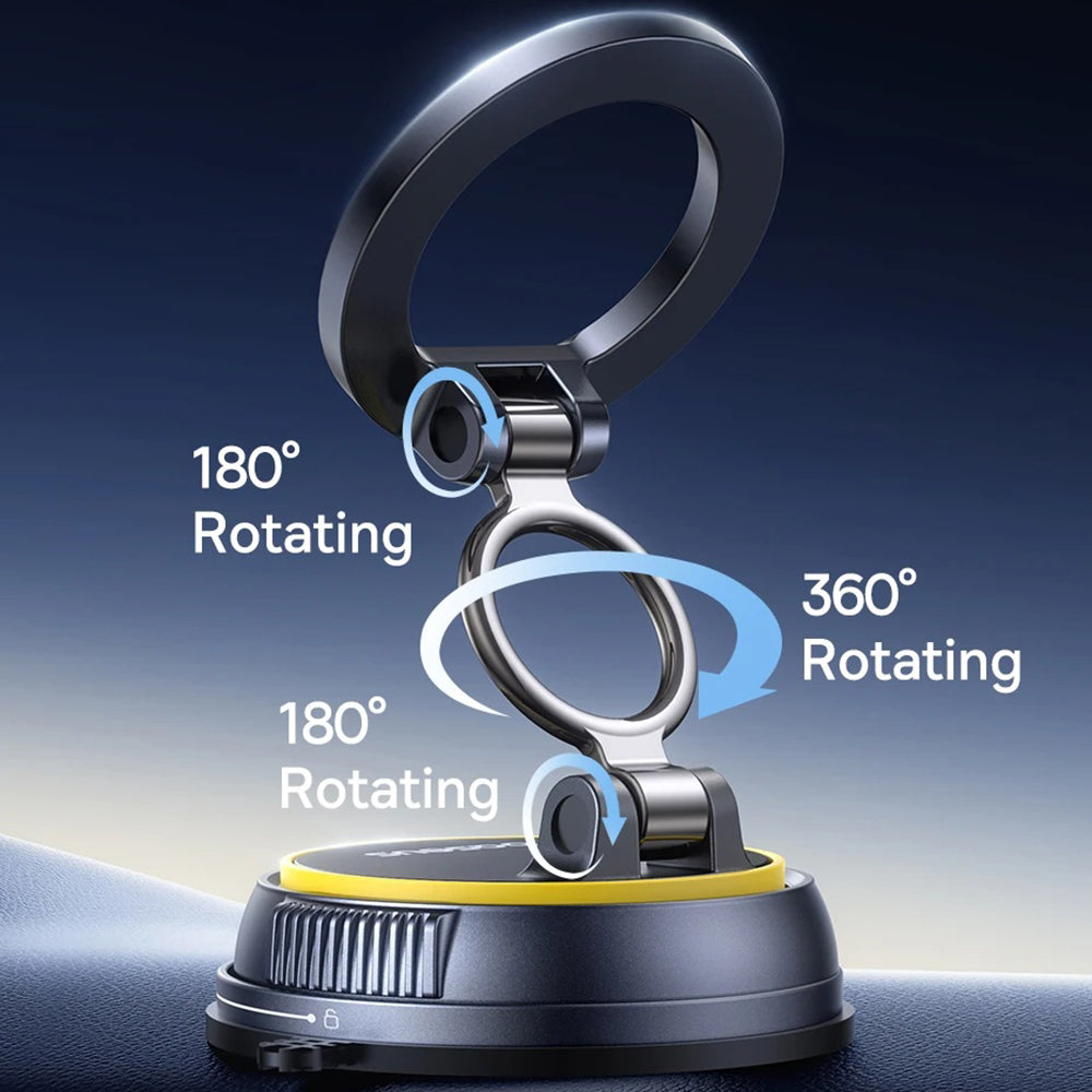 • For support, the holder uses a vacuum base and a twist-lock mechanism. This keeps the holder fixed on the dashboard, without slipping.