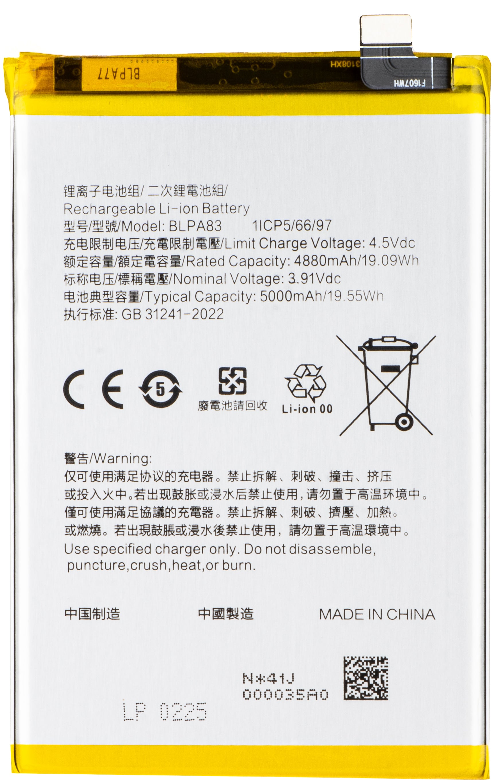 Battery for Realme C63 / C61 / 10 Pro, BLPA83