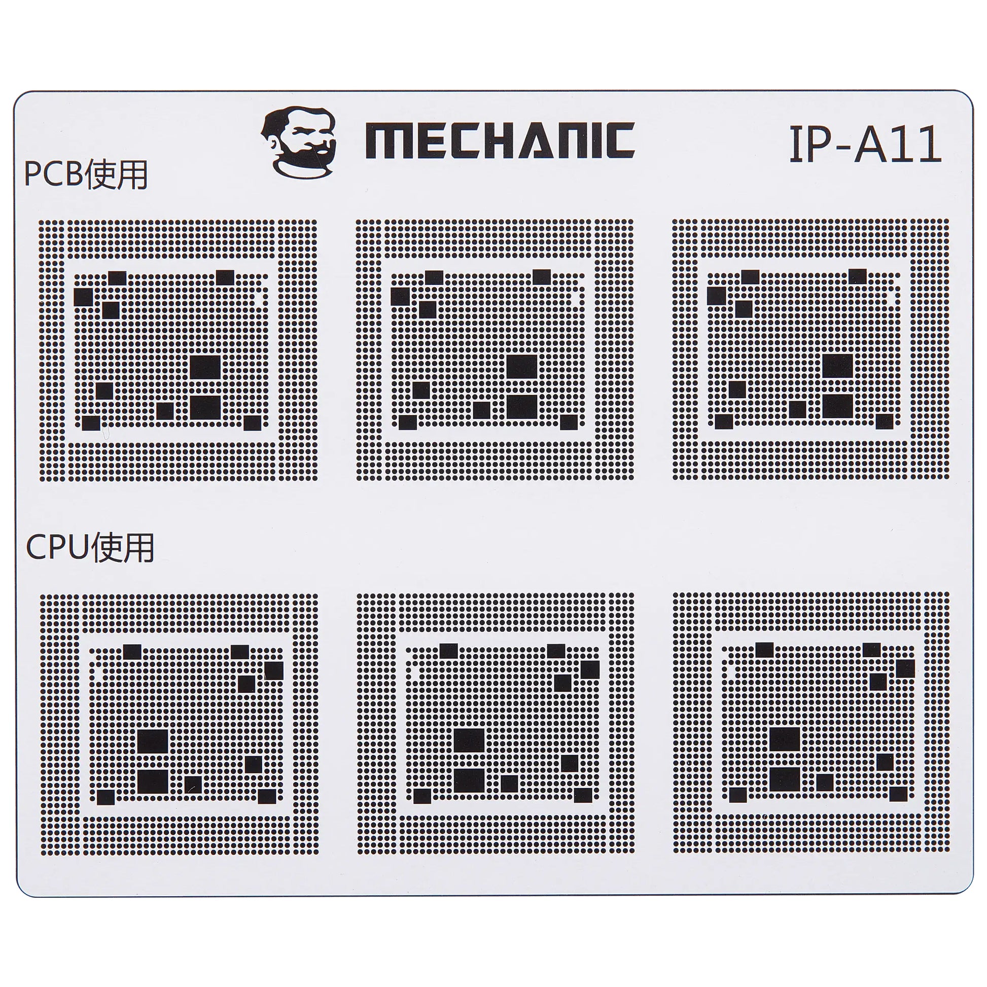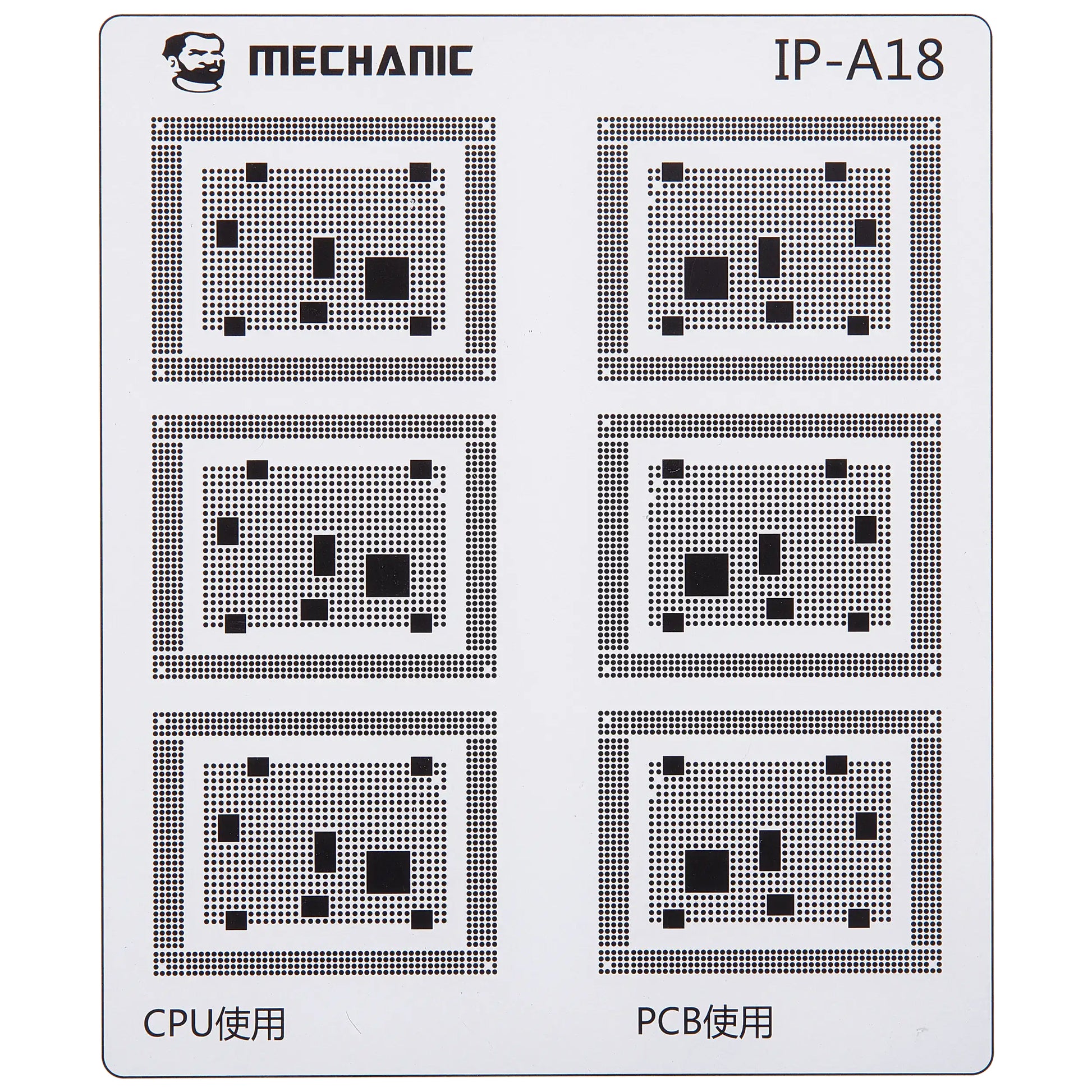Isolate the traces on the motherboard with maximum precision using the professional Mechanic COM80 template, dedicated to CPU repairs on the Apple iPhone 6 - 16 series.