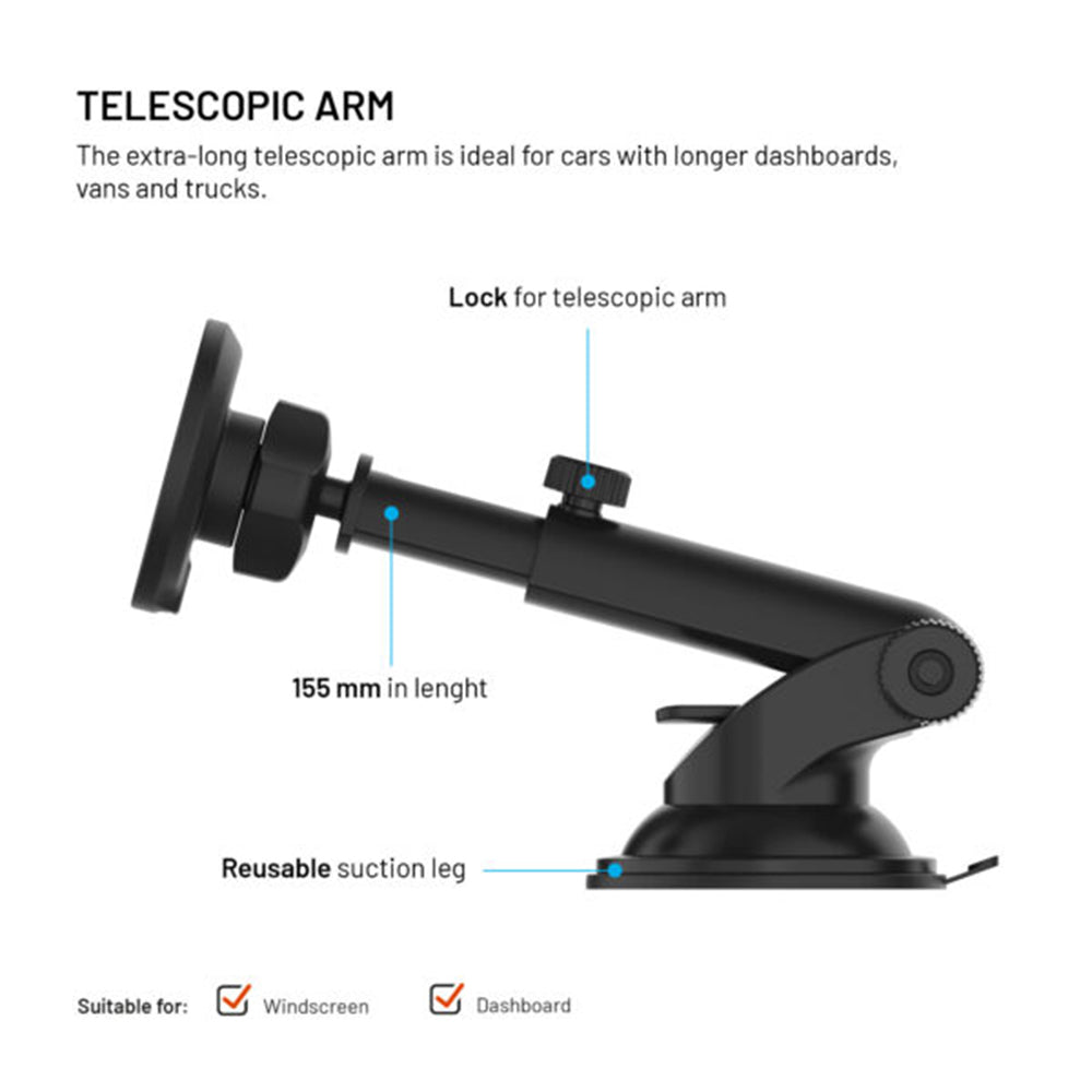 The 360 rotating head offers complete freedom in adjusting the phone's position. The telescopic arm allows distance adjustment according to preferences, so you can enjoy optimal screen visibility at any time.