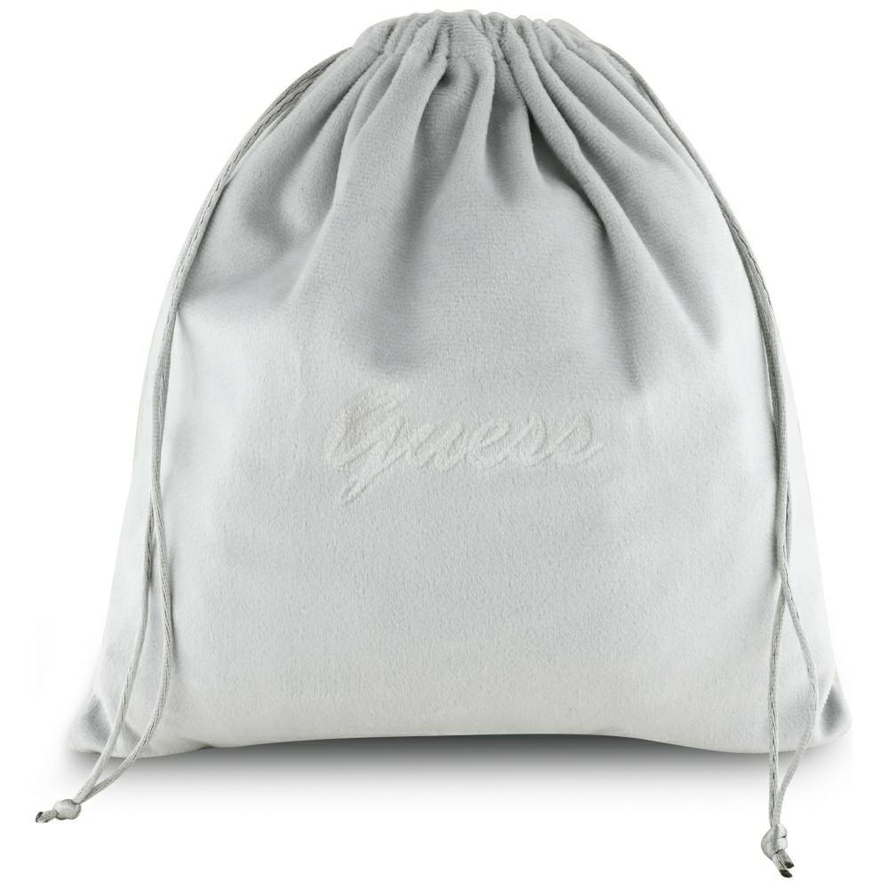 • The generous cup embraces the ear, and the textile passage deliberately contrasts with metallic inserts that represent the GUESS signature.