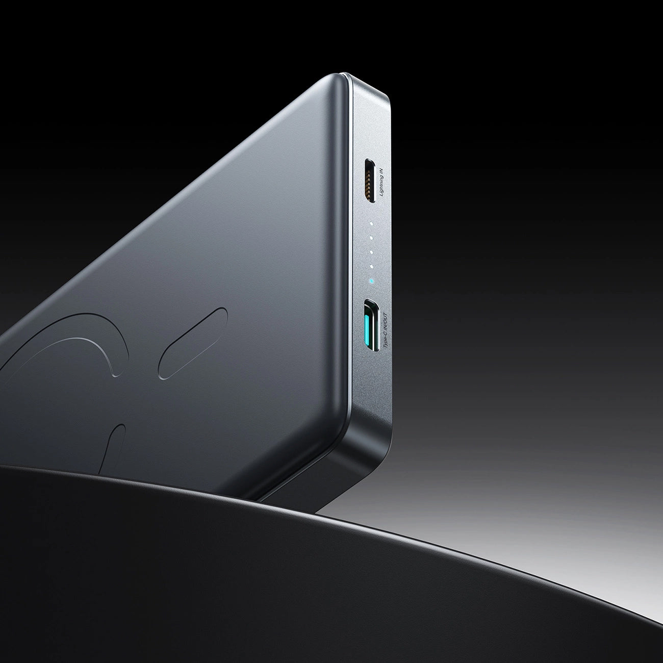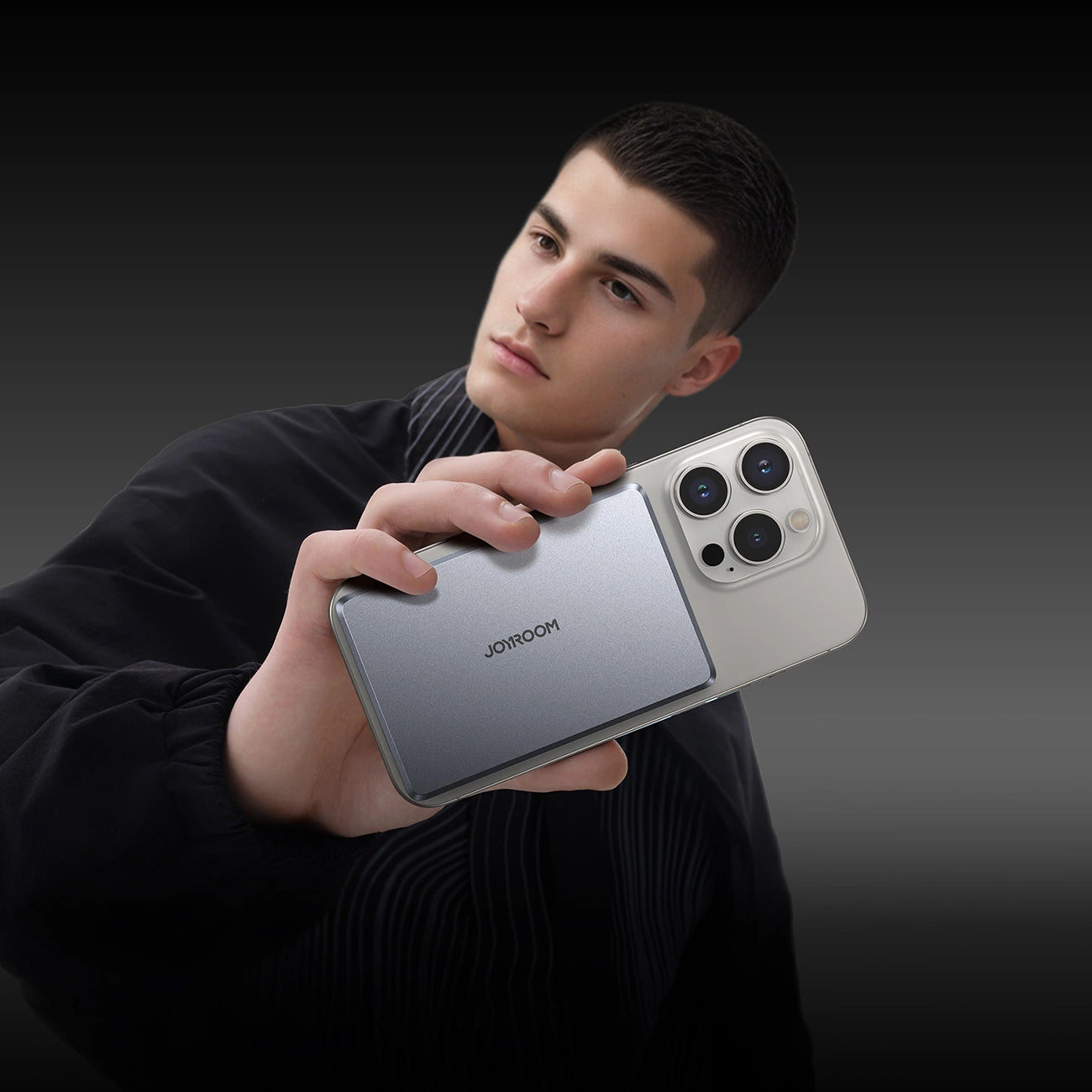 Wireless External Battery Joyroom JR-PBM08 Pro - Gray The Joyroom JR-PBM08 Pro external battery is the ideal partner for those who appreciate modern technology and reliability in any situation. With a generous capacity of 10,000 mAh and support for 20W PD fast charging, this battery provides power to your devices exactly when you need it. The 15W wireless charging and the ability to power two devices simultaneously make it a perfect device for multitasking. The elegant and ultra-thin design, the size of a small book, offers portability and comfort in use, and the strong magnetic module guarantees a secure connection with the phone. LED indicators facilitate monitoring of the energy level, giving you complete control. Choose Joyroom JR-PBM08 Pro and enjoy efficiency, style, and performance wherever you are! Compact and elegant design With an ultra-thin design, comparable to the size of a small book, this external battery fits perfectly in your pocket or bag, always within reach. Automatic charging through Snap-and-Charge The wireless charging technology of up to 15W automatically starts the process as soon as the device is connected. Perfect for everyday use, hassle-free. Strong magnet for maximum stability The 10N magnetic module keeps the phone securely fixed, providing stable charging even on the move. 20W PD fast charging technology The Power Delivery function allows charging three times faster, saving precious time and keeping devices ready for use. Simultaneous charging for two devices Compatible with both cable and wireless charging, this external battery offers the possibility to power two devices at the same time, maximizing efficiency. Intuitive LED indicator The LED panel provides a quick view of the charging level and battery status, so you always have total control over the process. Features: - Capacity: 10,000 mAh (3.85V, 38.5Wh) - Nominal capacity: 6,000 mAh (5V/2.4A) - Inputs: Lightning: 5V/2.4A (12W) USB-C: 5V/3A, 9V/2A (18W) - Outputs: USB-C: 5V/2.4A, 9V/2.22A, 12V/1.67A (20W) - Wireless charging: 5W / 7.5W / 10W / 15W (max) - Wireless + USB-C charging: 5V/3A (max) - Dimensions: 103 x 68 x 14 mm - Weight: 176 g - Material: aluminum alloy, PC, ABS