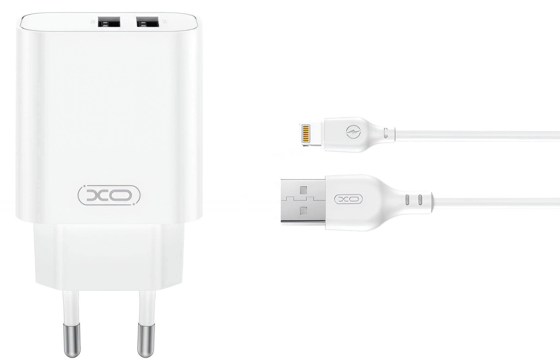 Network Charger with Lightning Cable XO Design CE34, 12W, 2.4A, 2 x USB-A, White
