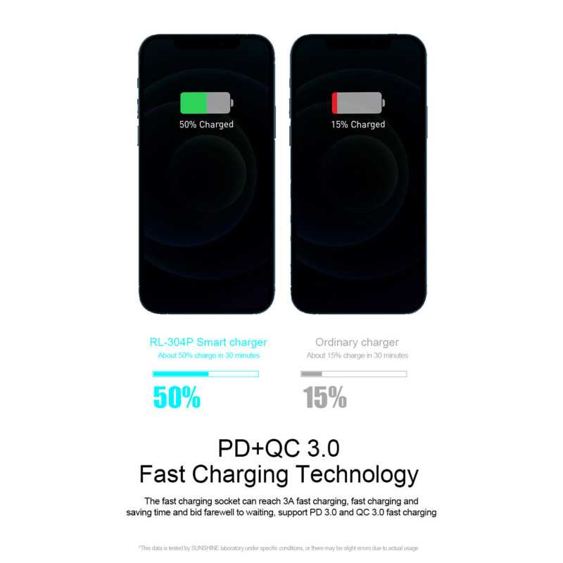 protection features against overcharging, overheating, and short-circuiting ensure full safety for all connected devices. With a compact design and modern blue finish, the RL-304P adds organization and efficiency to any workspace.