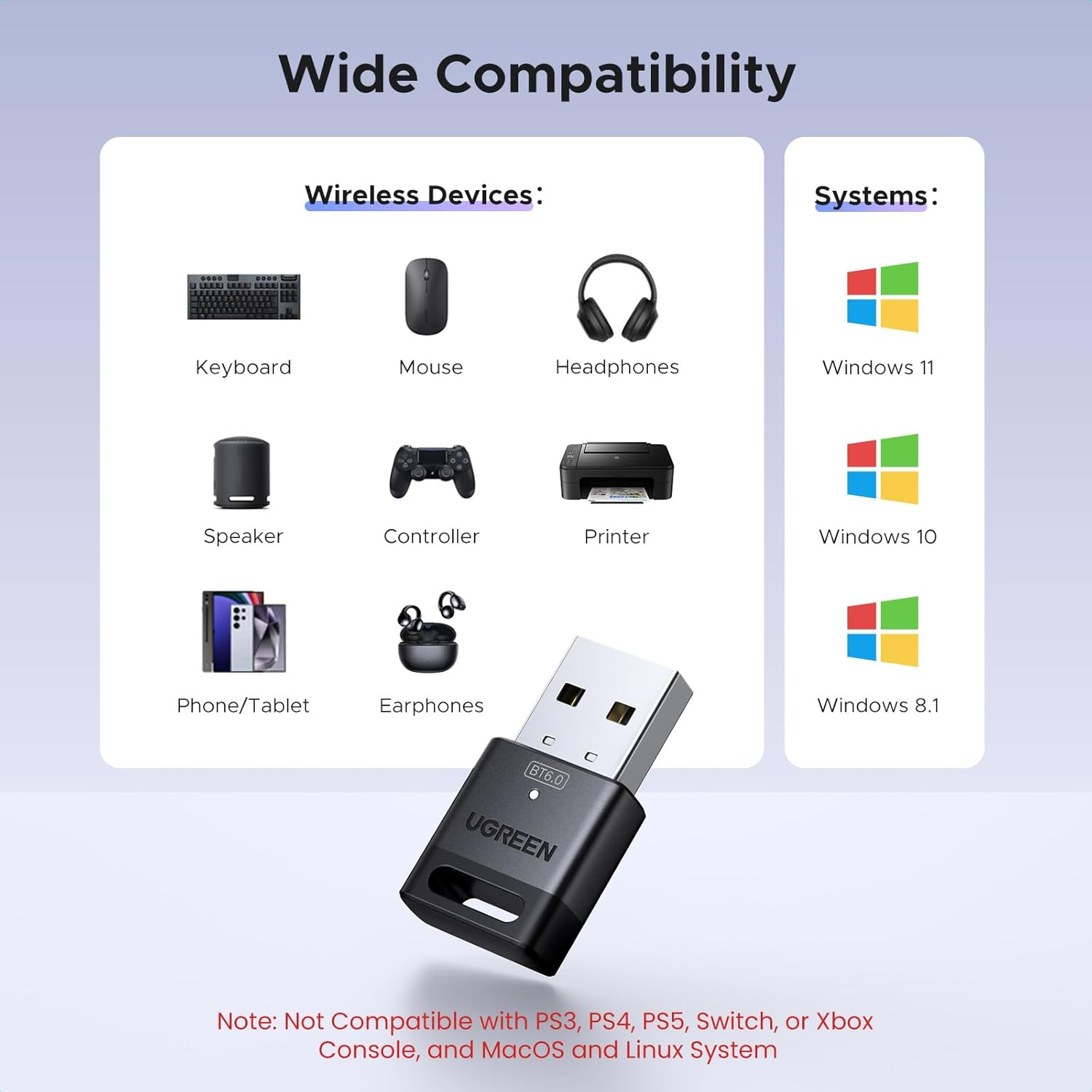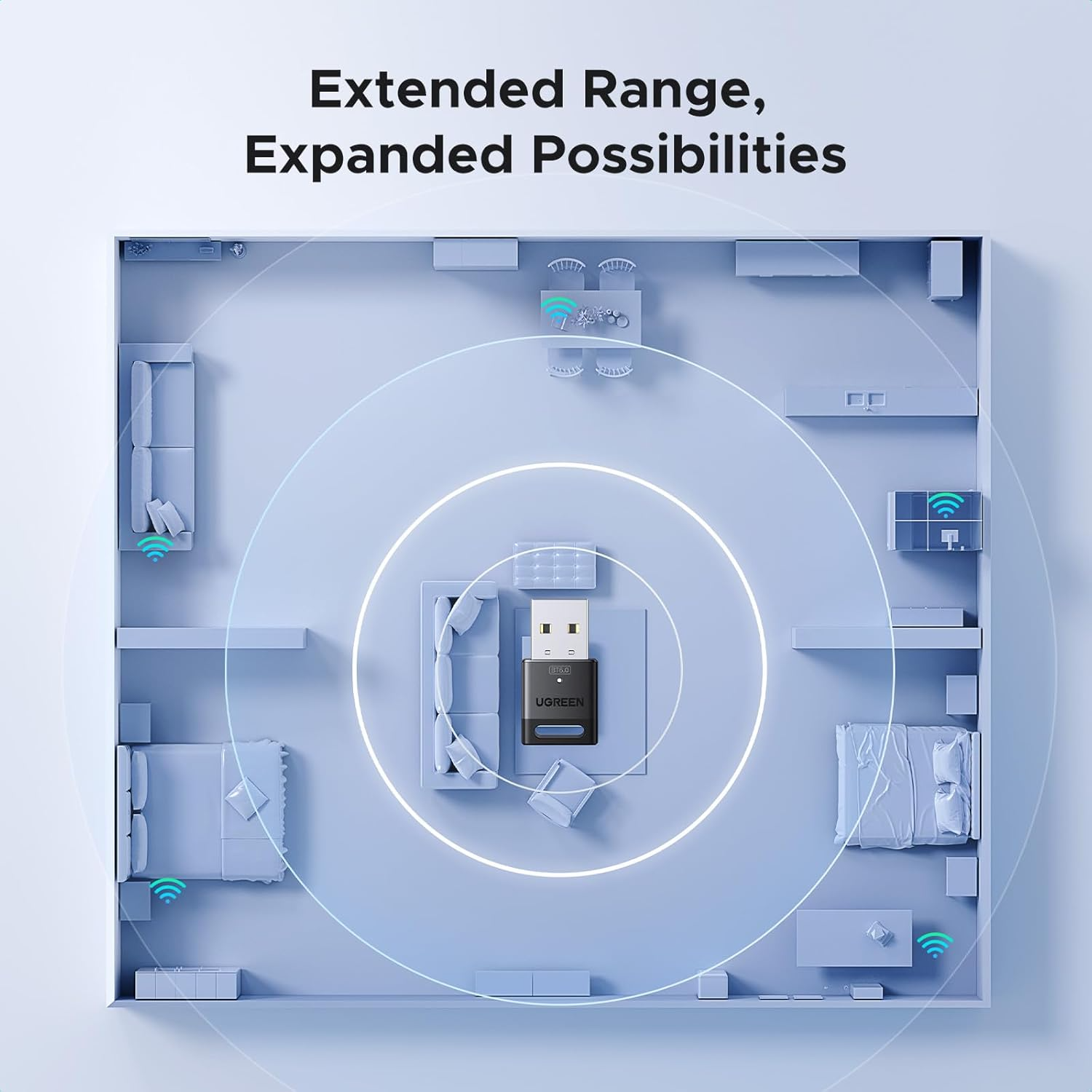 The UGREEN CM748 USB Bluetooth Adapter is a compact and high-performance solution for adding wireless connectivity to desktop and
