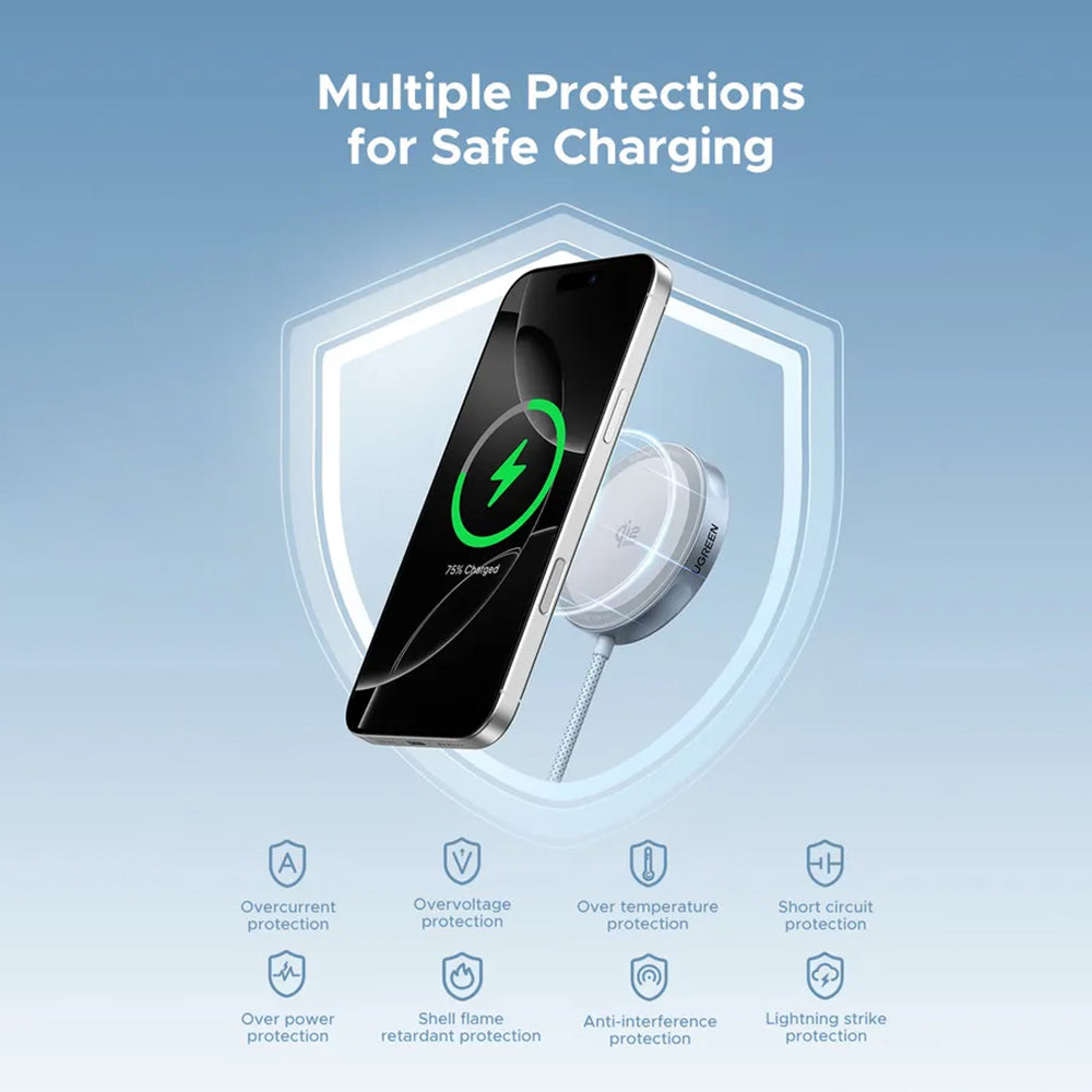 Quickly power up your iPhone with the new 25W wireless charger. The Qi2 technology allows Fast Charging of your devices.