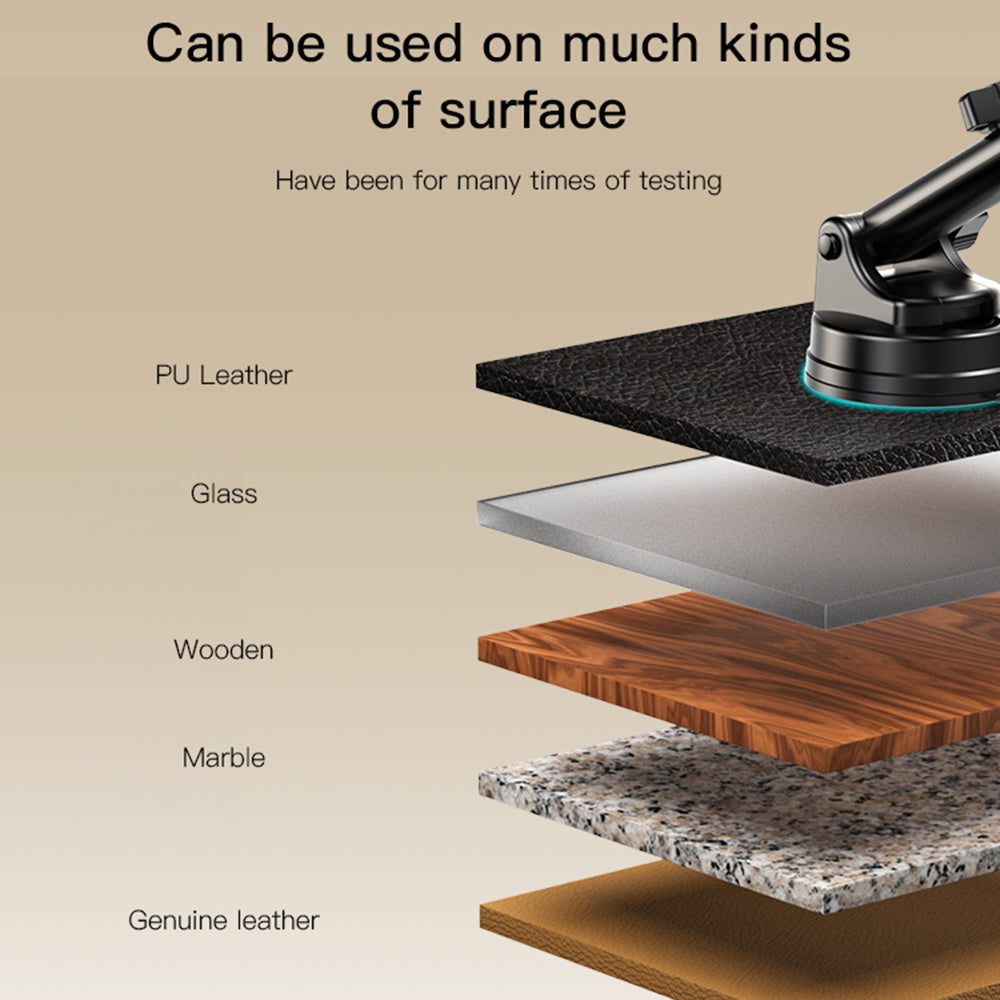 Choose this car holder for your phone with dashboard and windshield attachment. Invest in the simple products that you enjoy daily! Safety is a priority Carbon texture and anti-slip silicone protections. This car phone holder with suction cup makes it impossible for the smartphone to slip. It is the best phone holder for cars with dashboard attachment. A wise choice You have encountered problems with the old holder because you could not position it optimally. This windshield car phone holder features an adjustable arm. You can change its size anytime. Specifications: Materials: ABS, silicone; Arm length: 16-21cm; Installation time: windshield, dashboard; Compatibility: phones with a diagonal between 4.7 and 7.2 inches.